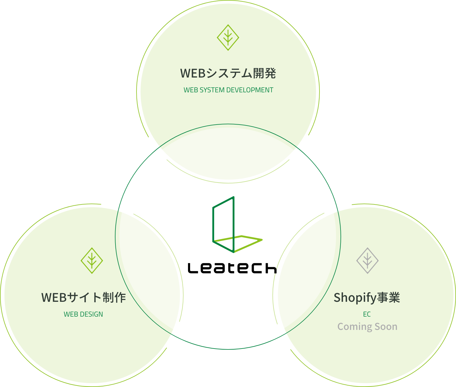 - 事業内容Webシステム開発、Webサイト制作事業、Shopifyテーマ・アプリ開発等